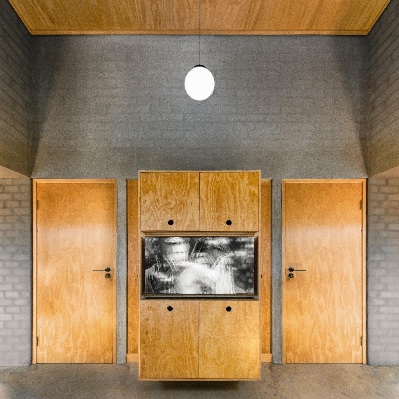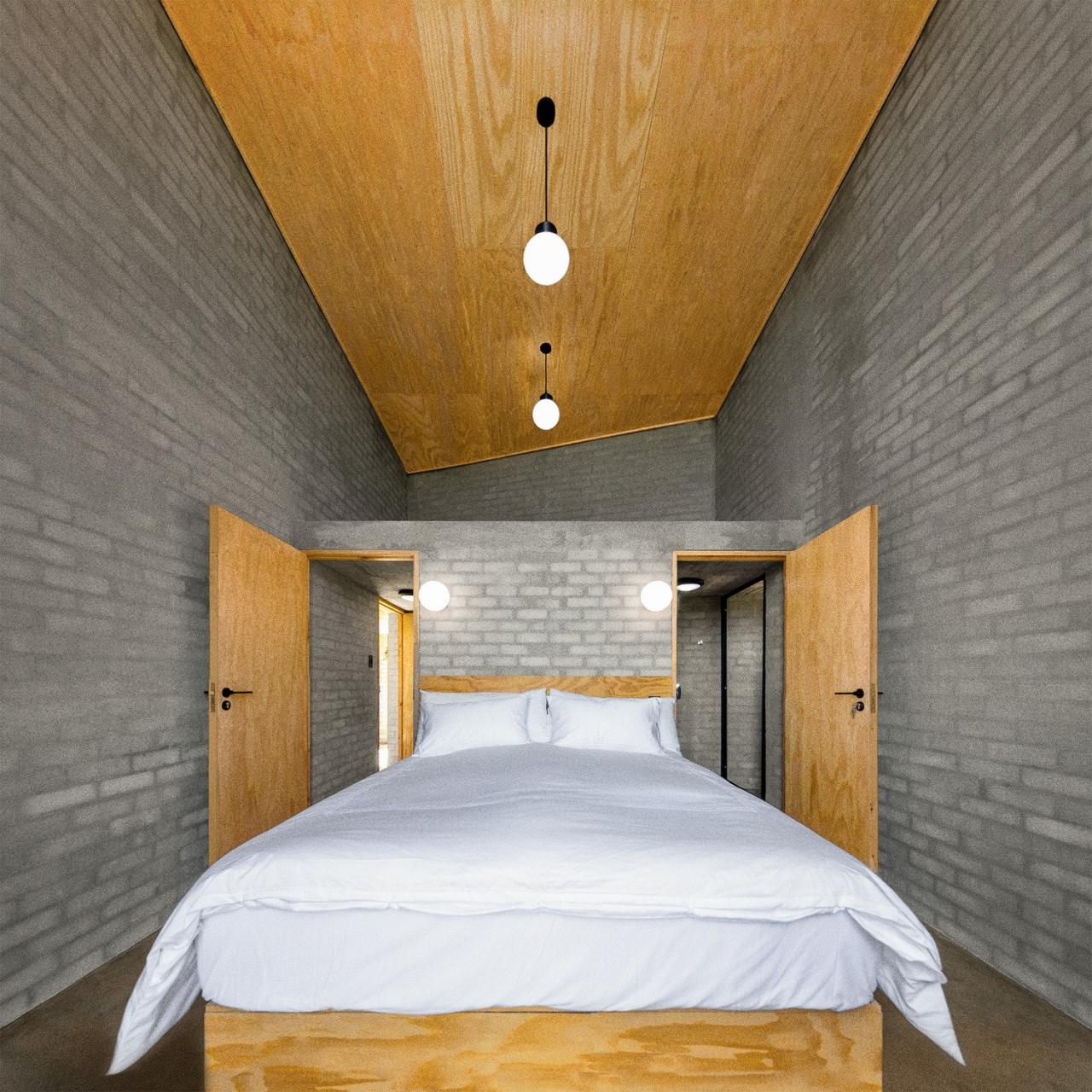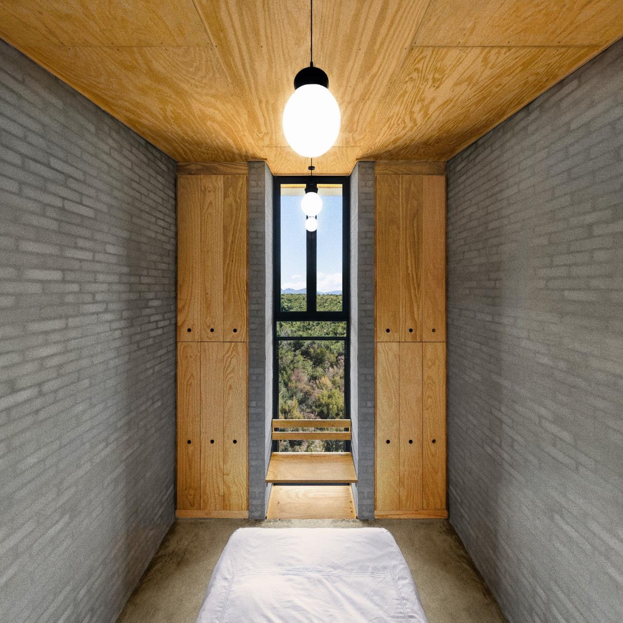 建筑材料—— 房子采用非常简单的材料建造,内外都用混凝土砖包裹,地板和檐口采用拆模混凝土。外门窗采用粉末涂层铝材制造,而所有家具、天花板和室内门则由当地胶合板制成。