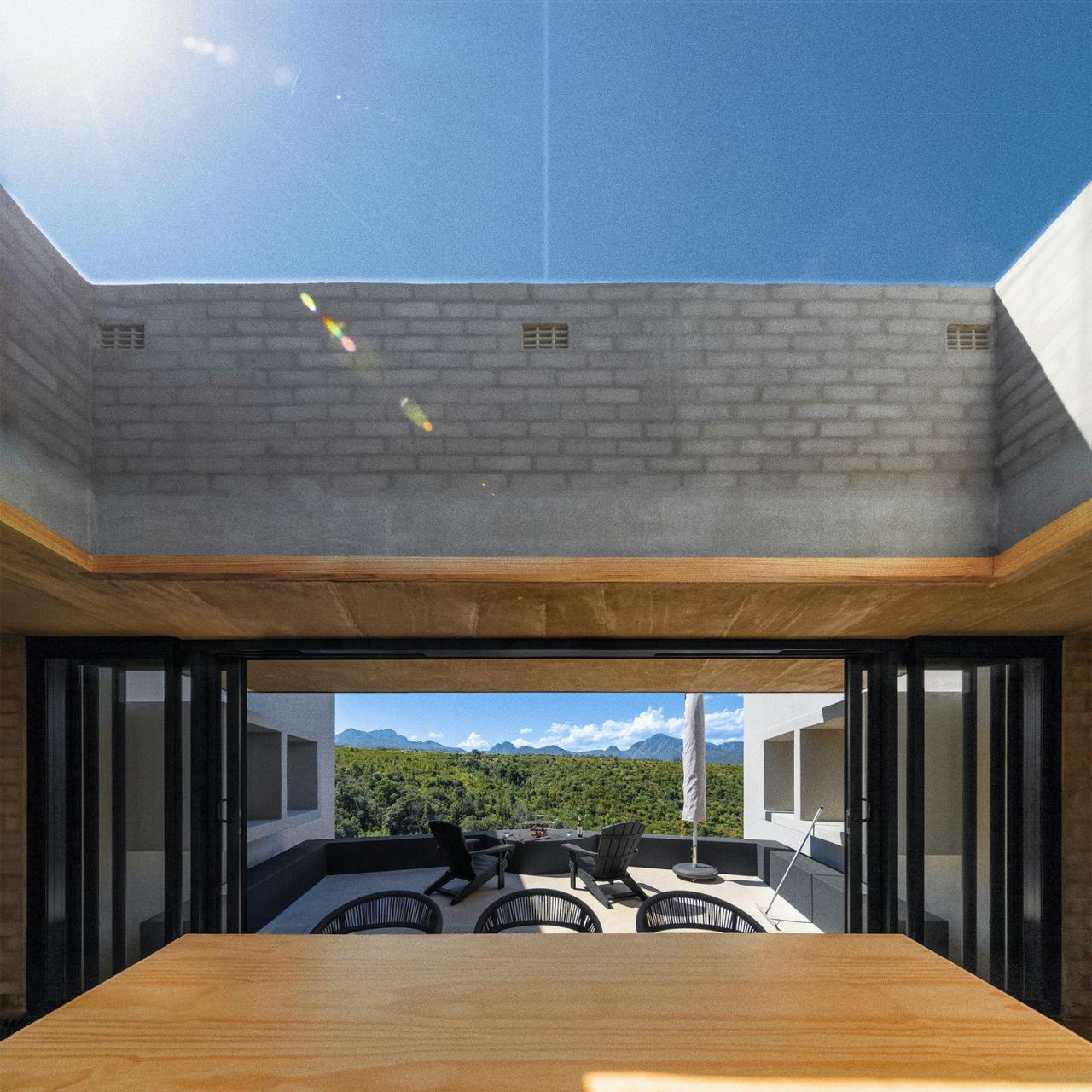 可持续性—— 种植本土植物的景观维护需求极低,且无需额外用水。使用当地材料显著降低了建筑的能耗。建筑自然采光和被动通风,使得能耗极低。屋顶收集的雨水储存在地下。建筑设计可容纳太阳能装置,实现完全离网生活。