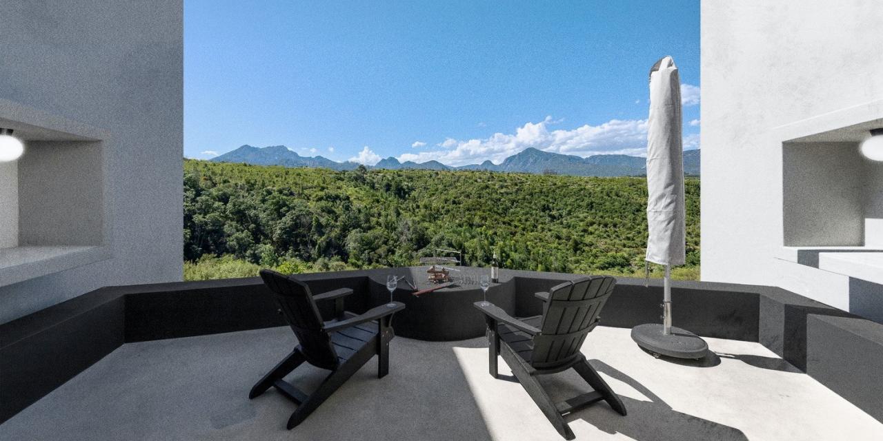 设计理念—— 两座小房子上下叠放:上面是主宅,下面是未来的公寓。这两个单元都面向北方视野开放,同时避开南风。设计使其低矮地融入景观之中,以避免阻挡行人望向奥特尼夸山脉的视线,同时为业主保持绝对的私密性。