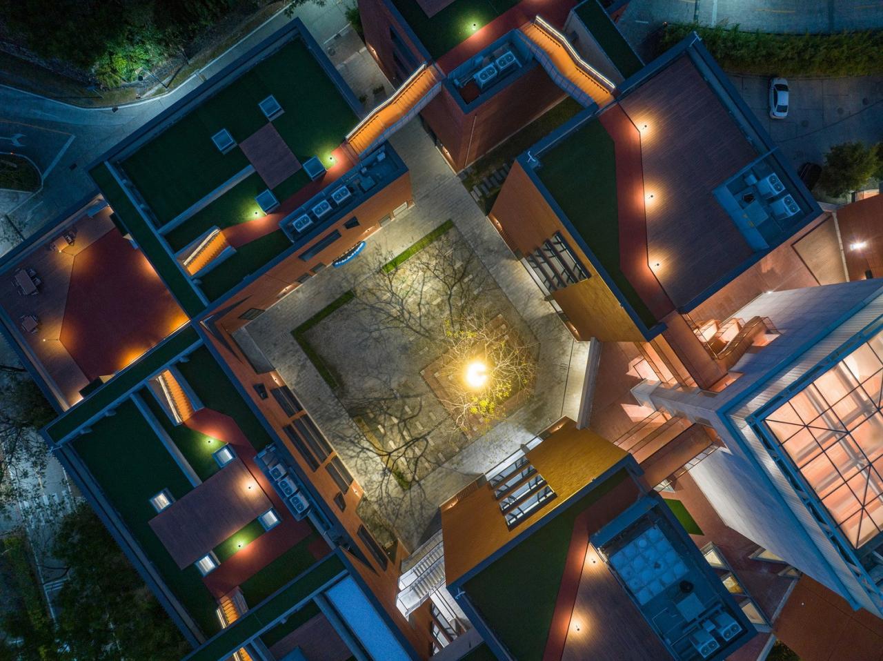 元白楼是北京师范大学珠海校区内的既有建筑。随着校区的发展,元白楼在外部形象、内部功能等方面均无法满足使用需求。改造设计中,通过新增屋顶连廊、跑道等方式,形成一气呵成、贯穿 15 个独立盒子的立体游走路径,将原本无趣的屋顶空间转化为感知自然的交往场所。此外,通过对原有建筑空间的梳理与再创造,营造多样交往空间,让建筑本身成为匹配未来设计学院教育模式的“行为激发器”,人与自然的联系、人与人的交往成为设计教育的重点。