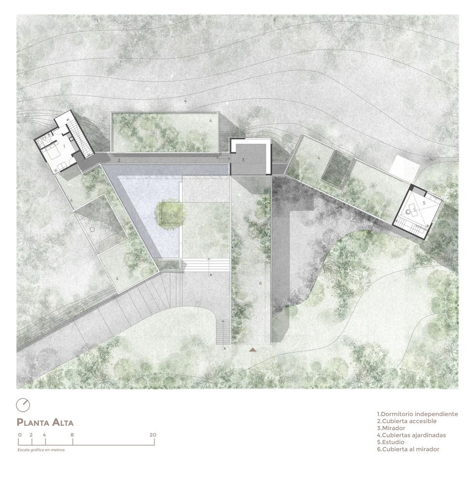 结构与物质: 所选择的材料和建筑系统应具有所需的可塑性和多功能性,能够容纳土壤并适应现有地形。它可以在石板上承载大面积的泥土,在其上铺设植被,并有能力长期应对安第斯赤道气候(海拔 3200 米)的侵蚀性和不可预测性。