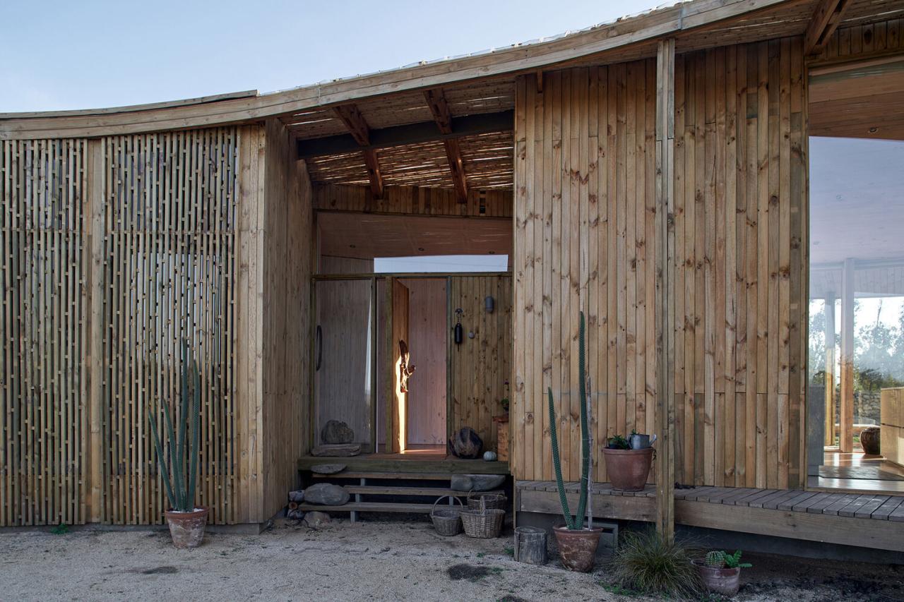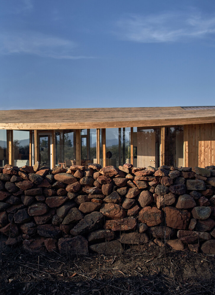 每一种这样的自然景象都化为了他们日常生活里的一种仪式。在这些与自然、花园和空间紧密相连的日常仪式中,他们能够以一种饱含爱意且充实的方式来享受生活。房屋的体量蜿蜒在一个岩石花园之上,这个花园由受到保护的前哥伦布时期的仪式用岩石所构建,周围环绕着半圆形的石墙和一层石英石,营造出了一个私密的生活空间,其中心处于房子主要的斐波那契曲线轴线上。第二条曲线以房屋前院花园的轴线为核心,为位于工作室和房屋之间的入口预留了空间。