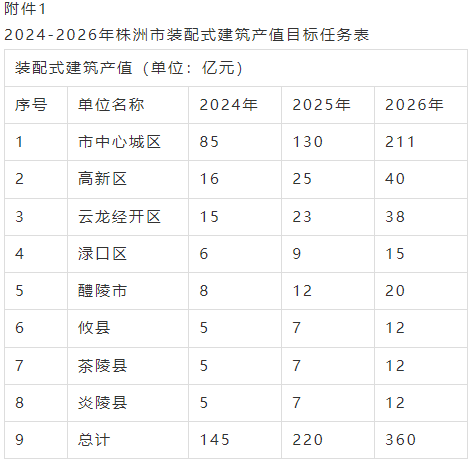 1.2024-2026年株洲市装配式建筑产值目标任务表