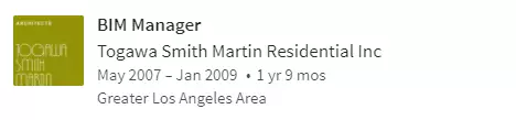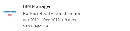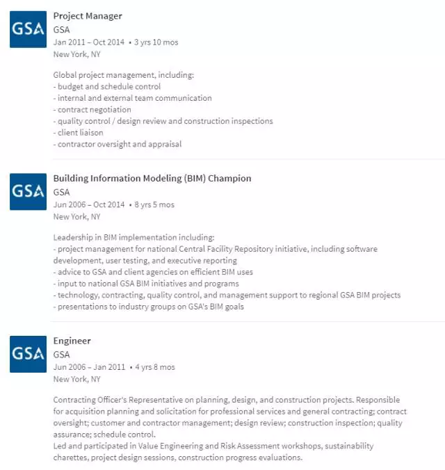 这些参照主要来自LinkedIn,我把我在美国工作时打过交道的业主、设计、总包、分包、咨询单位的BIM人员的职业发展轨迹从LinkedIn上截图,再辅助以一些说明。