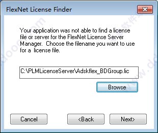 10、点击“browse”选择许可文件位置,就是你要c盘创建的“PLMLicenseServer”文件夹中的“Adskflex_BDGroup.lic”文件;