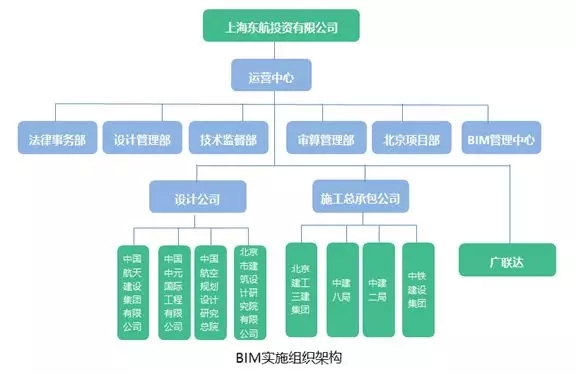 建立项目BIM实施组织架构:为更好的推进北京新机场东航基地项目的工程信息化的实施工作,东航投资于2017年设立BIM 管理中心,主要负责制定企业BIM发展规划与管理制度、编制BIM技术标准、项目级BIM应用落地审查、内部技术培训、以及企业内部业务需求调研与研发跟踪等工作。BIM 管理中心派专人进驻北京新机场东航基地项目指导、协助现场的管理工作。