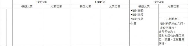 BIM施工模型细度表关于施工措施中临时构筑物的说明