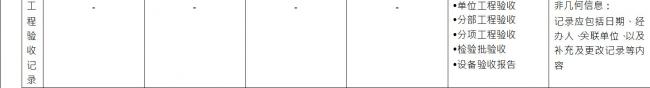 BIM施工模型细度表关于施工质量管理中工程验收记录的说明