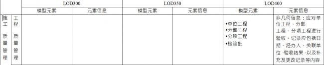 BIM施工模型细度表关于施工质量管理中工程验收记录的说明
