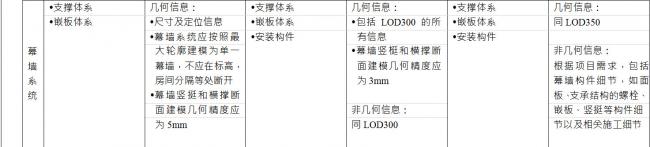 BIM施工模型细度表关于幕墙系统的说明
