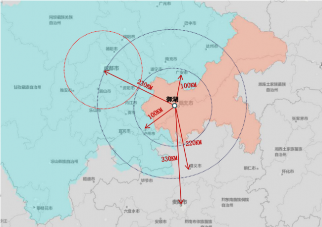 御湖文旅小镇项目位于璧山区御湖新区老城向新城发展的衔接处,区位优势明显。直接辐射整个璧山区,约73万人口,随着重庆至主城轨道交通的接驳,间接辐射大重庆区域,约3000万人口。