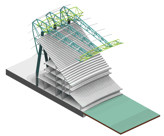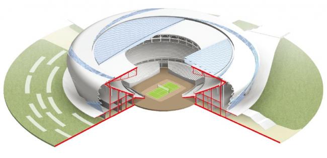 ▲ 某大型体育场馆竖向分解图层层分解的结构清晰地表达了建筑逻辑