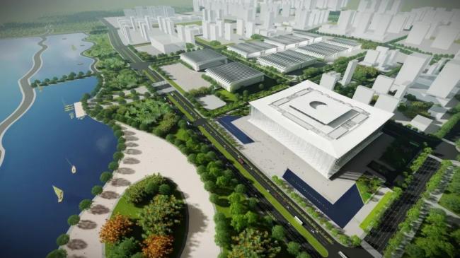 ▲ 某会展中心鸟瞰渲染