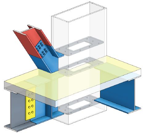 ▲ 钢骨混凝土梁细部节点及施工工序模拟