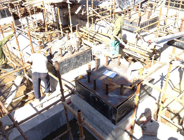 减震柱构造:上下两块对称的带翼缘钢板,与梁可靠连接,中间是相对较软(屈服点低)的钢材。
