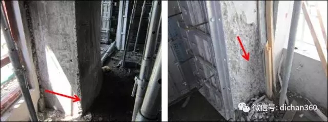 ⑩PC+铝模的暗柱部位、PCF内二段式螺杆板内下端出现大量爆模现象。