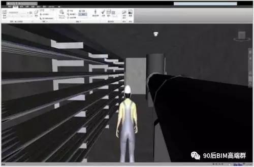 3.将模型导入到Navisworks软件,采用第三人行走模式,进行净空检查。