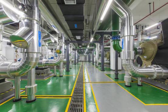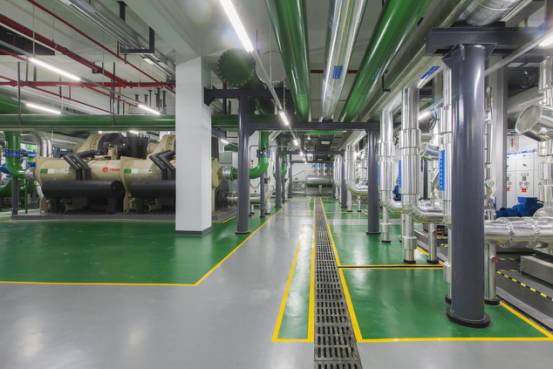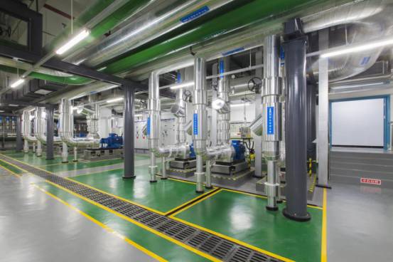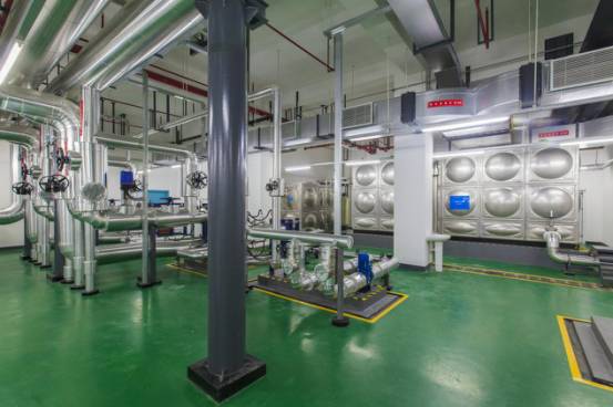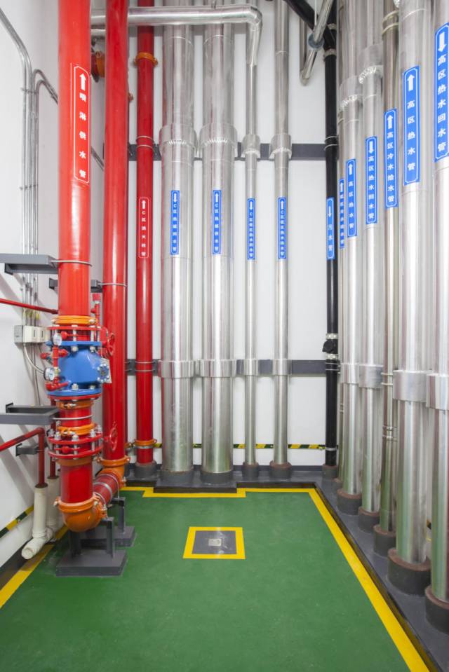 空调换热机房布局合理,设备运行可靠,支架安全、可靠、大气,标识清晰。
