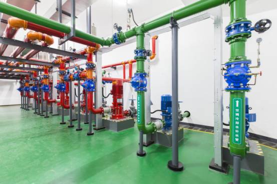 消防泵房设备布局美观,阀门高度一致,油漆涂刷均匀,管道成排成线,标识清晰。