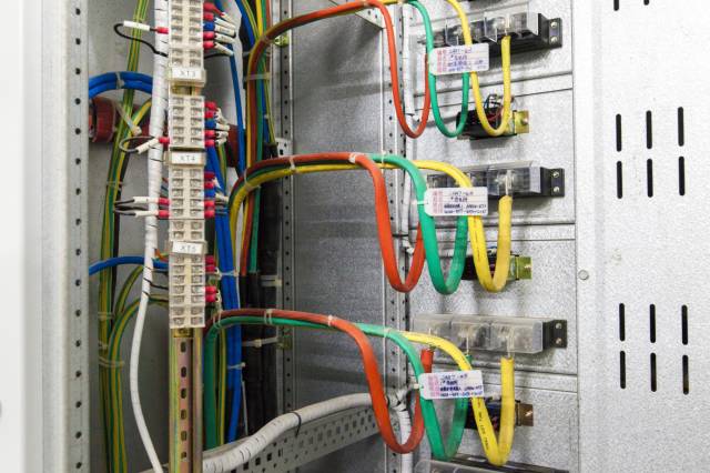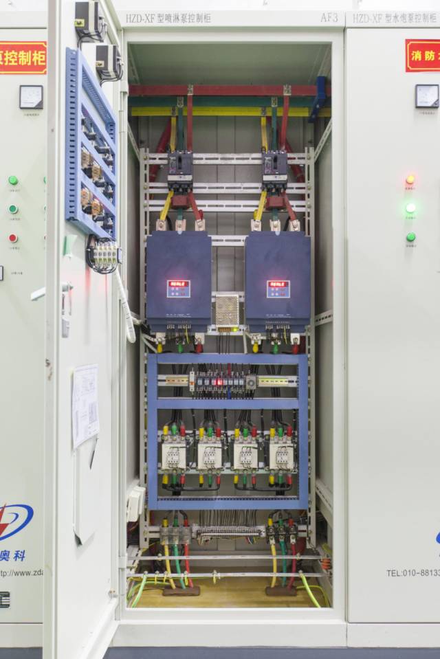 消防泵房内配电柜接地可靠,柜内线缆排布有序,底部绝缘板绝缘,防火封堵到位。