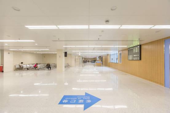 诊室候诊区灯具、喷头、风口、烟感排布精细美观,横成排、竖成行、斜成线,错落有致。