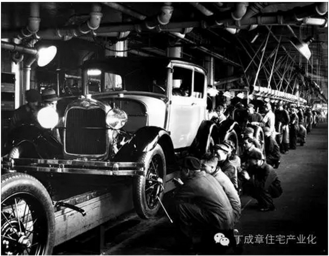 这不知是格鲁皮乌斯受福特T型车的影响而提出来的,还是福特T型车受格鲁皮乌斯住宅产业化思想的影响。总之,住宅产业化思想和汽车产业化思想几乎是同时出现的。但是,经过大约100年的历程,汽车产业化已经突飞猛进,而住宅产业化几乎就没有什么太大的进展。