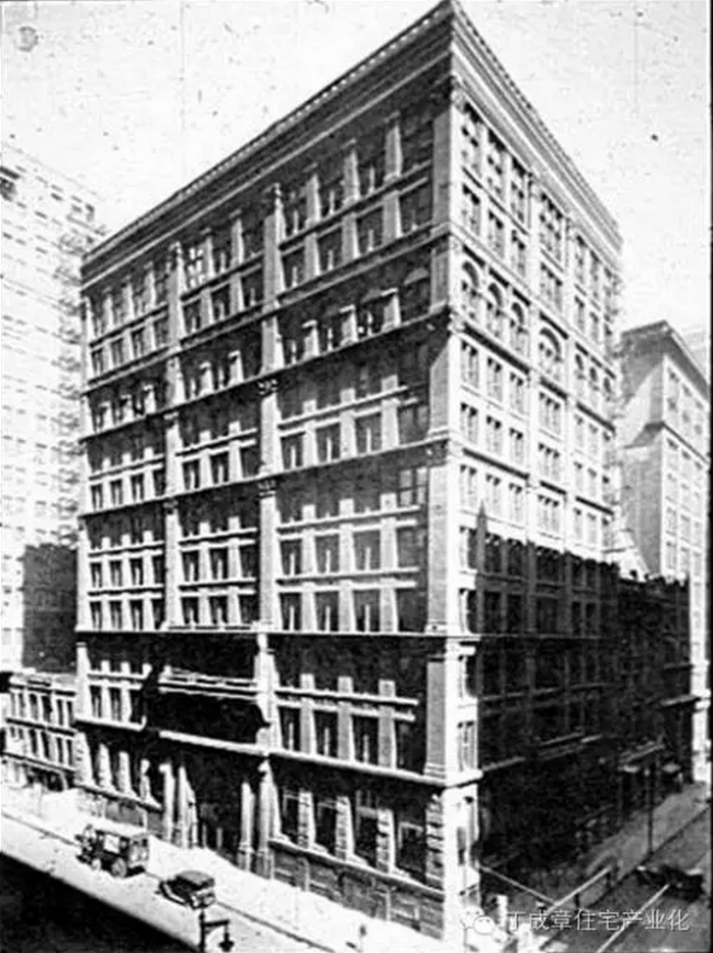公元1883年,美国发明家和建筑师,詹尼,威廉·勒巴隆(William LeBaron Jenney)在芝加哥设计了家庭保险公司大厦(图1)。该大厦是用铸铁和钢材建造的框架结构,它首次采用框架代替承重墙,因而被认为是一次革命,开创了现代高层建筑的历史,是里程碑式的建筑物。