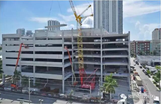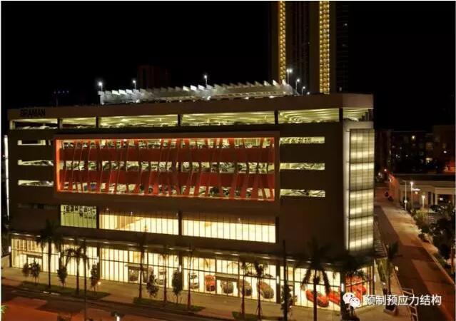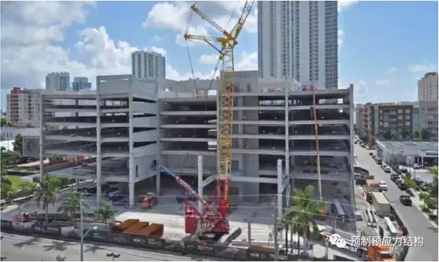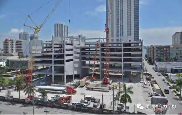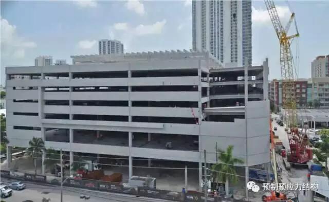 全预制立体停车埸是美国的特色,充分运用了预应力及干连接的特色。也是典型剪力墙-梁柱体系,也充分运用双T轻易的提供18米的跨度,基本上其他建筑材料不太容易提供更有竞争力的同型建筑。这才是发展装配式工业同常的途径。