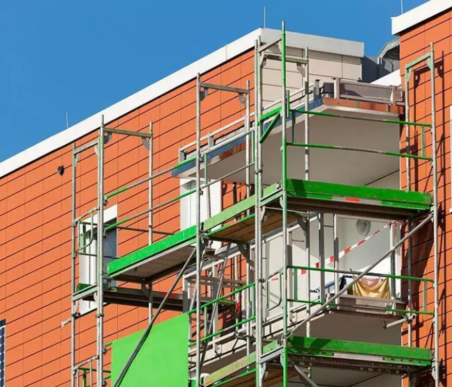 (3)既有建筑进行扩建、改建施工时,外脚手架搭设不应影响安全疏散、消防车正常通行及灭火救援操作;外脚手架搭设长度不应超过该建筑物外立面周长的1/2。脚手架安装与拆除人员必须是经考核合格的专业架子工。架子工应持证上岗。