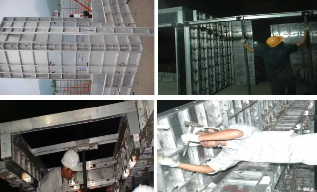3、施工方便,铝合金建筑模板组装方便,可以由人工拼装,或者拼装成片后整体由机械吊装。