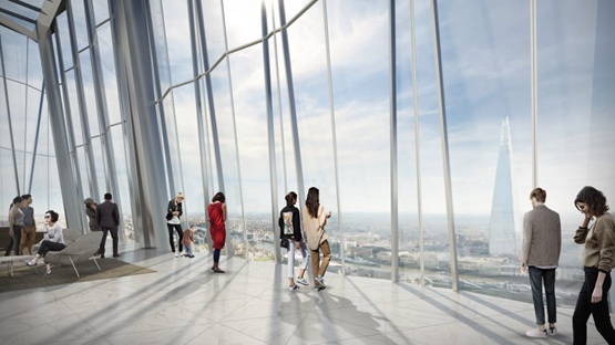 第五十五层将(BIM)有360度的观景条件,可以观看伦敦全城,而第五十六层将是一个三倍高的空间,可以看到南面的伦佐-皮亚诺(Renzo Piano)设计的“碎片大厦”(Shard)。