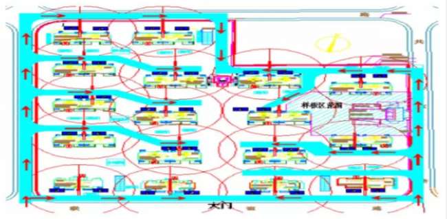 为了PC结构进入施工现场以及能够在施工现场运输畅通,设置进入现场主大门道路至少8m宽,施工现场道路设置5m宽,保证PC结构运输车辆能够在主大门道路双向通行,保证在施工现场转弯、直走等方式的畅通。
