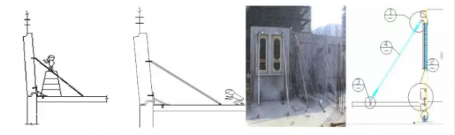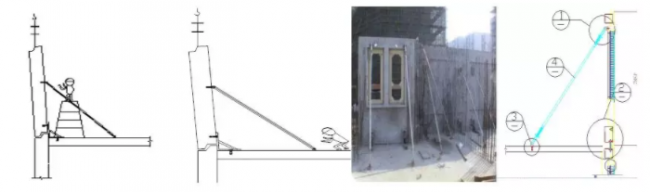 (a)预制墙板的临时支撑系统由长、短斜向可调节螺杆组成。