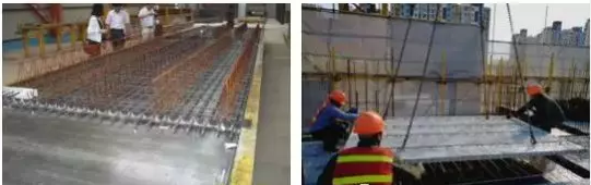 由于预制叠合底板可以在预制厂批量生产,不但生产效率高(合理使用自动化流水线可获得更高的效率)、产品质量好,而且现场施工时可以大量节省脚手架和模板,能够减少楼盖施工的人工和作业用具,降低了劳动强度,具有施工速度快、工程造价低的优势,技术已经非常成熟,在自动化流水线普及的欧洲地区非常流行。