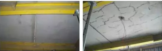 在混凝土完全硬化后,楼板下表面裂纹处甚至可以清晰看到浆液的结晶体(一般呈灰白色),混凝土裂缝的出现自愈合的现象,裂缝愈合后的混凝土不影响承载能力,且抗渗性能方面优于全厚度整浇的楼板。