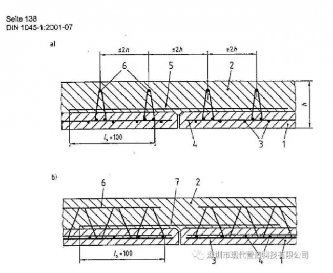 ▲ 德国规范DIN1045-1:2008-08 中关于叠合楼板拼缝搭接的示意图
