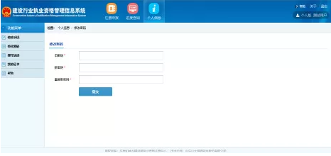 选择左侧的“个人信息修改”菜单,进入变更信息页面。办理变更手续主要针对个人姓名、身份证号等关键信息发生变更的注册人员。