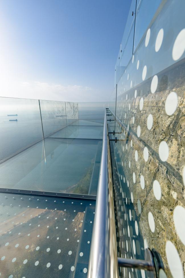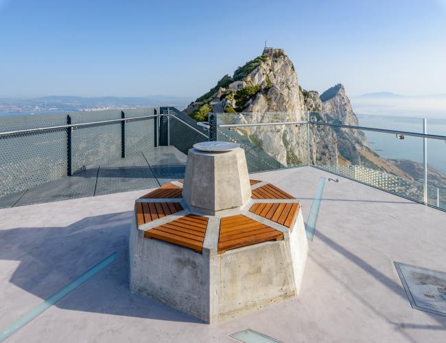 “天空步道是代表直布罗陀政府在上岩自然保护区建造的最新景点,作为广泛改善项目的其中一部分,旨在为当地人和游客提供更为新颖和多样化的方式来享受直布罗陀的岩石保护区。总体规划项目中还建造了一座70米长的悬索桥,重建大量许多年前军用的炮台等装置,并在新建的步道上引入了解释指向的标识设计。