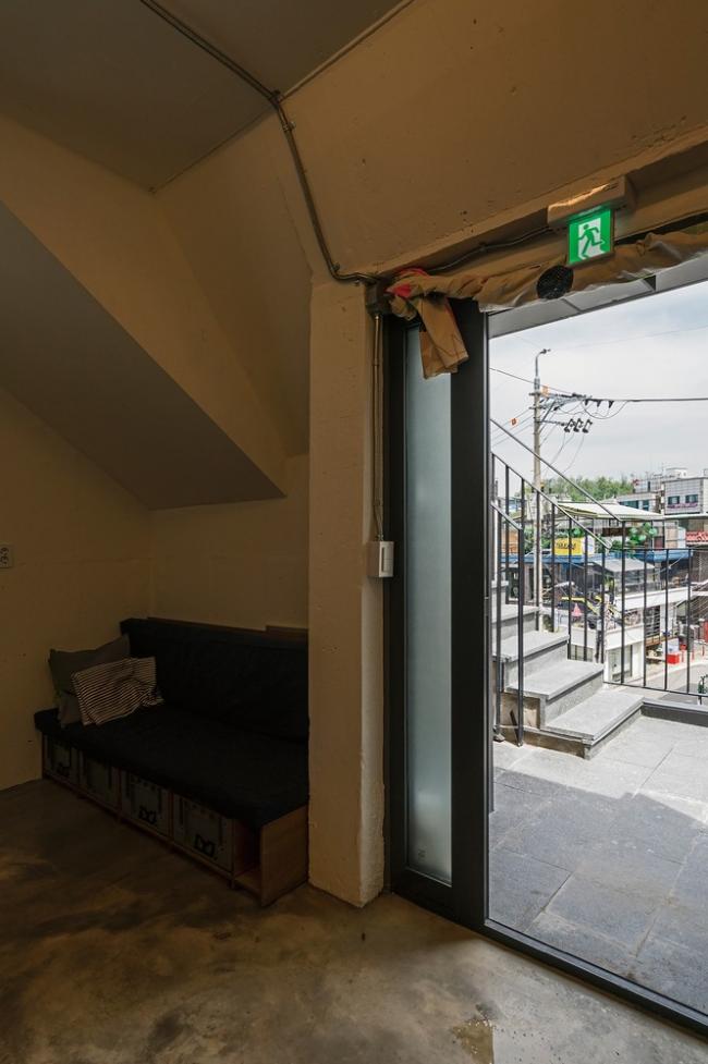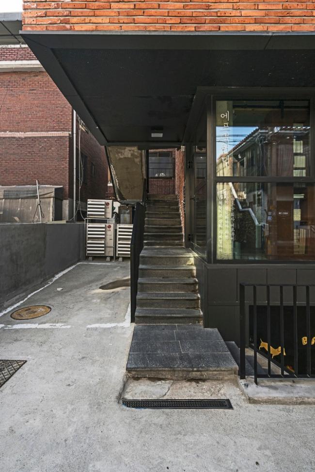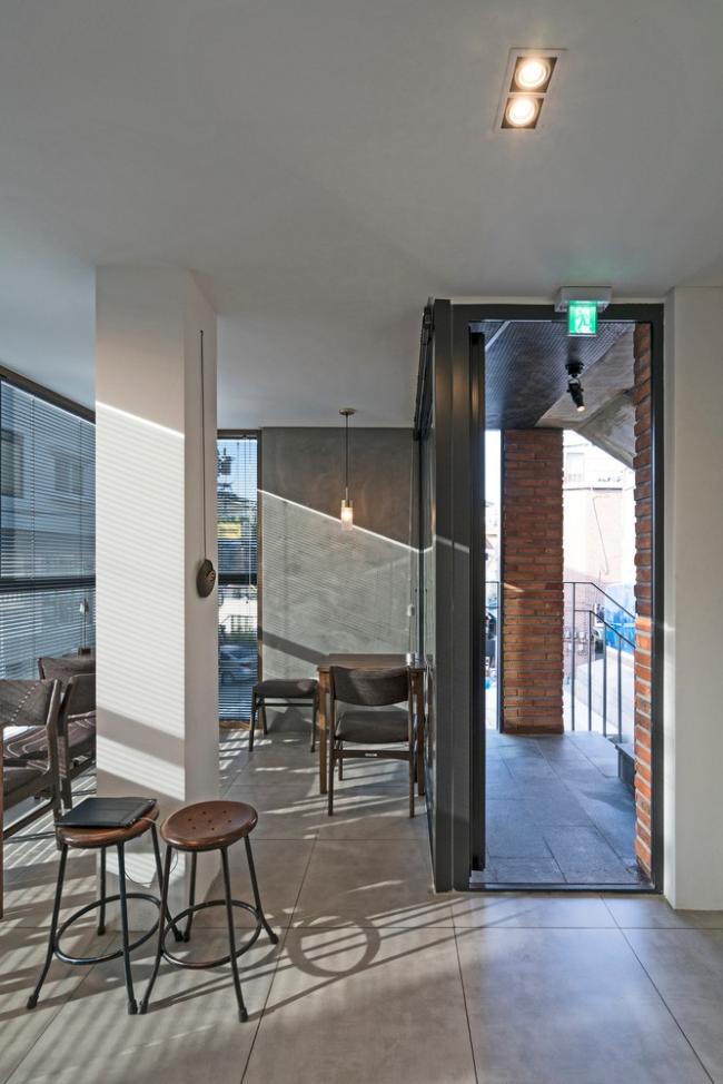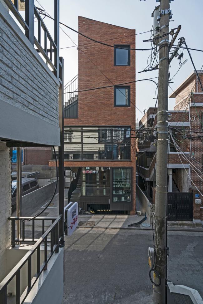 项目这座大楼的未来租户是在设计时确定的。地下室用作酒吧,一层是礼品店,二层是深夜咖啡厅,三楼和四楼用作办公室。虽然每个楼层的实际面积不到30m2,但租户积极参与设计过程,指出自己的需求,这一过程能提高空间效率和租户满意度。