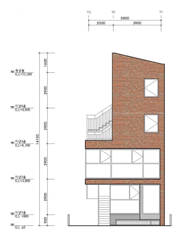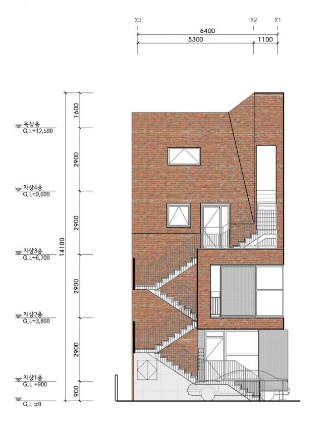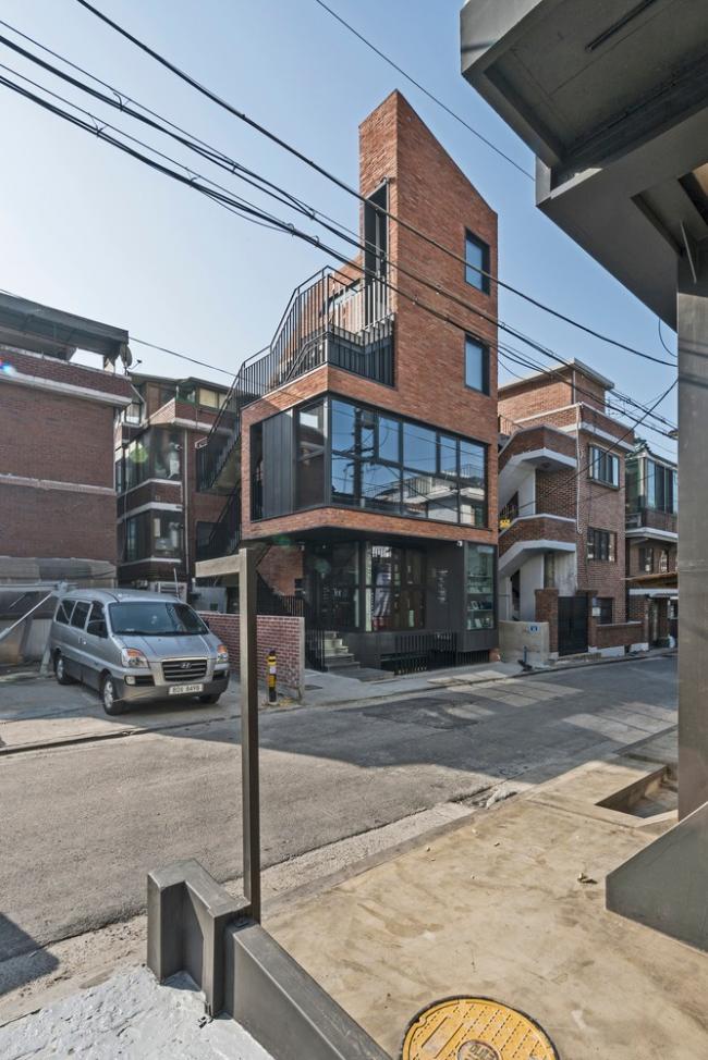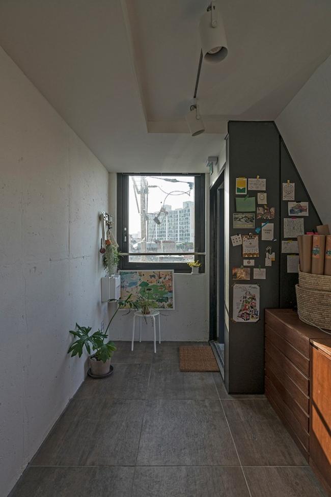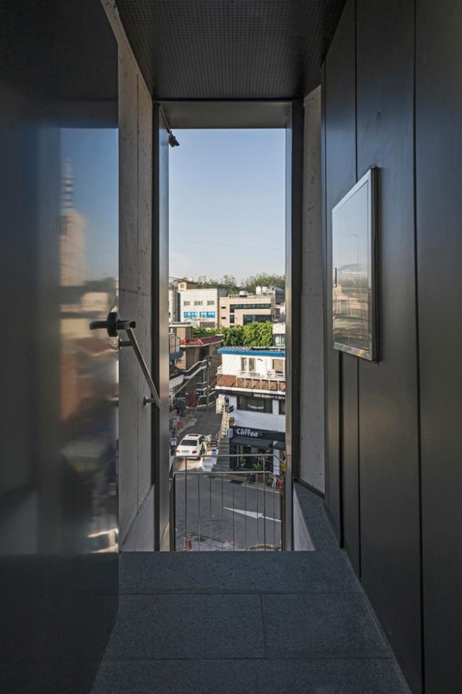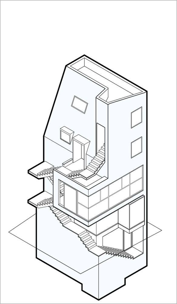 流线视图基地位于韩国首尔的芒原洞(Mangwon-dong)。由于场地面积仅70平方米,且该建筑预计按层出租,所以外部楼梯成为该项目中最重要的元素。楼梯沿着建筑外围蜿蜒而上,最终隐没,使视线终于楼梯而不入内部空间。通常,小空间通过组合和简化以得到尽可能多的利用。在这个项目中,我们提出创造一个规整空间,将垂直方向的交通与视图都外置,尽量减少空间紧张的影响。