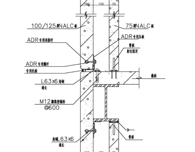 ○ 外墙系统采用蒸压加气混凝土(ALC)复合墙体,包括ALC外墙板、空气夹层(可放置保温棉)、ALC内墙板。外墙与主体结构采用ADR摇摆工法连接,实现柔性连接,适应主体结构变形