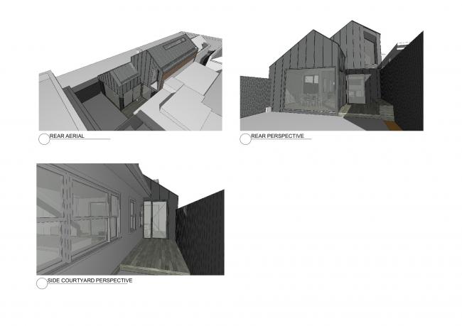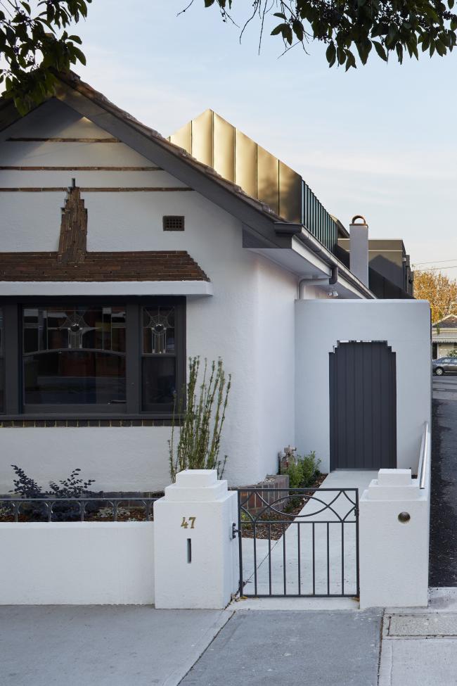 我们的方法是创造原有住宅的影子,一个O'Brian house的现代 “副本”, 它呈现出一个简单的具有雕塑感的形式,放置的位置经过精心考虑,以作为原有建筑的补充。房子必须对繁忙的朝南的街道保证私密性,同时接受北方的阳光。因此,新的整体形式对于南侧街道是无窗的,底层退至南侧边界。屋顶沿用了现有的屋顶坡度,第一层设置在北边界(远离街道),以尊重原始的房屋形式,并呈现原始的房屋烟囱。新建筑的外表皮设计经过精心设计和细节处理,确保简洁美观,去除所有多余的视觉元素。