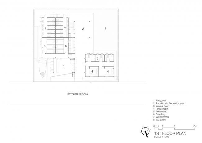 将现代的新钢结构与这两座现有的木结构建筑融为一体,不仅给KLOEM旅舍提供了良好的氛围,还向来曼谷旅游的客人传递了这儿的街坊会像“老朋友”一样亲切友好的信息。