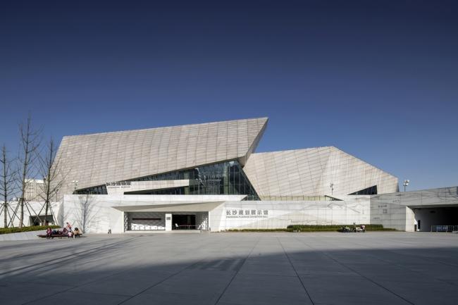 博物馆与城市规划展览馆总建筑面积34173㎡,围绕中心庭院展开空间,建筑形体的交错重叠及高差变化形成丰富的空间层次。博物馆外墙采用纹样1m*3m的混凝土挂板,采用一副长沙近代地图以及若干长沙老地名作为外墙纹理,体现长沙源远流长的历史文化内涵。