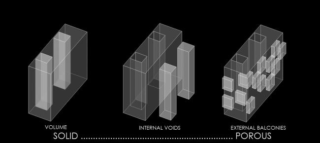 我们对这个项目的想法是通过从主体积中挖出两个内部的体量来重新排列,允许(BIM培训)的可建造体积,将它们分成几个较小的体积并将它们连接到周边以用作阳台。通过这样做,作为一个整体,我们创造了一个多孔体积,允许风和自然光在房子的每个角落流动,同时仍然满足了必要的所需体积要求。