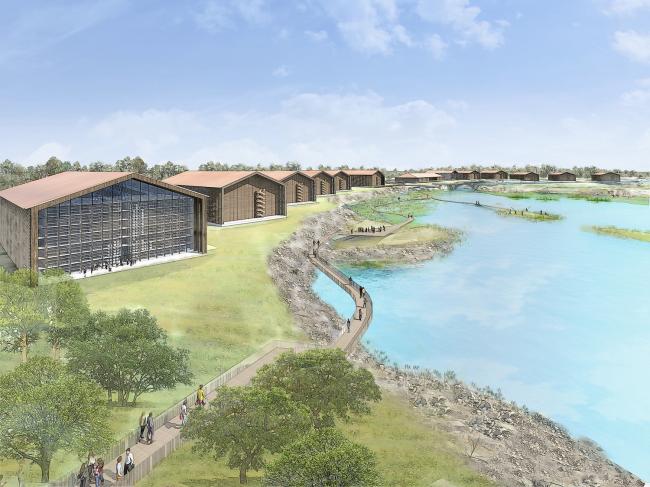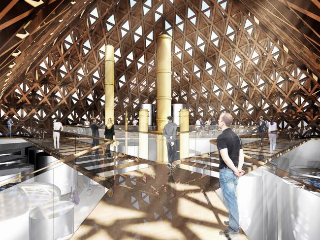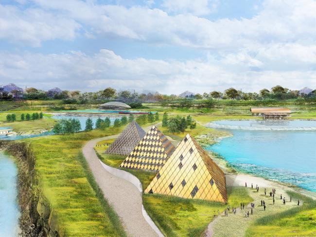这三座金字塔是用木材和玻璃打造出的菱形结构建筑,金字塔结构会呈现内部和外部。每个结构都将与围绕着讲述波本威士忌的制作过程的视觉元素相结合。现场还有一辆老式晚餐火车,而旧的采石场将改造成一个充满了水,用于钓鱼和游泳的大池塘。