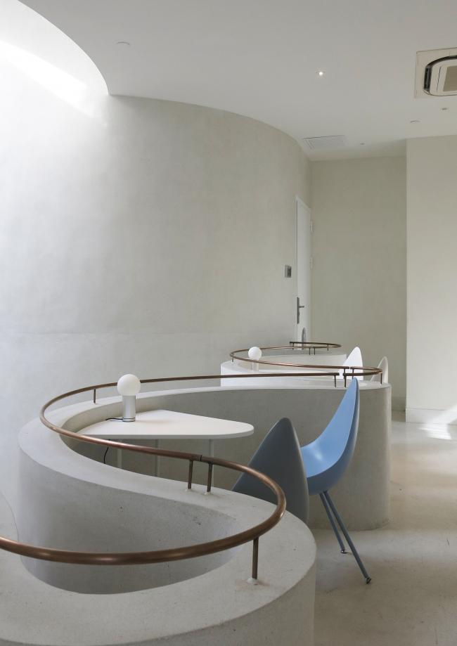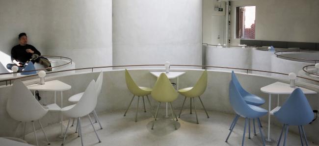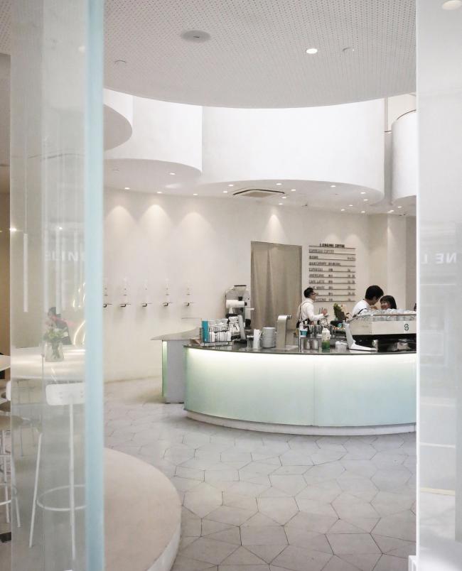 在色彩上,咖啡馆以白色为主。人们视线的焦点可以在纯净的空间中自由地安放。宁静的色彩留给人们一个想象的空间。