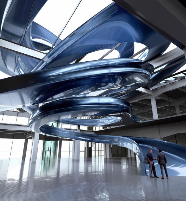 MAD设计的楼梯,贯穿地面与建筑楼层,最终直达观景台。楼梯与观景台,连成一体,整体近观就像是一件雕塑艺术品,吸引人们前往探索;远观则似一道龙卷风,从地核往大地向天空腾升,最终消隐于天际中,似是呼应着这座建筑见证了荷兰、甚至欧洲的过去、现在与未来。