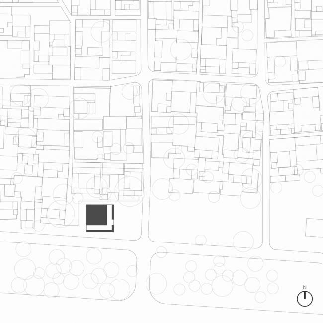 场地位于村庄广场一端,西北两侧为建筑围墙,东南侧为广场和道路,由于现有建筑的阻挡,原本四面敞开的想法难以实现,因此面向围墙的两侧顺势向上抬起变为座椅,而另外两外两侧将戏台空间向外延伸,形成一个小型的观演区域。整个戏台底层平面与屋顶形成一大一小两个错位的正方形,形成一种特殊的空间错位关系。