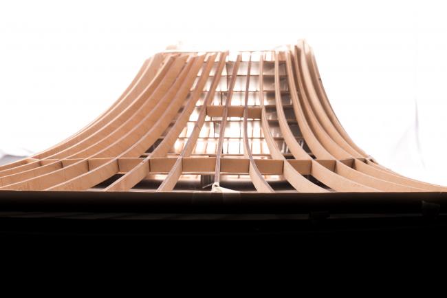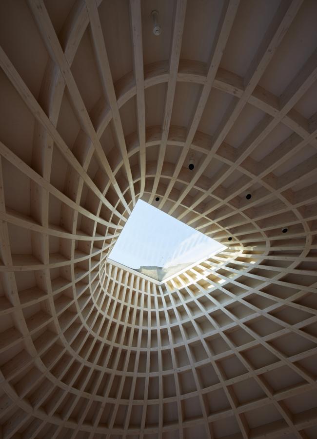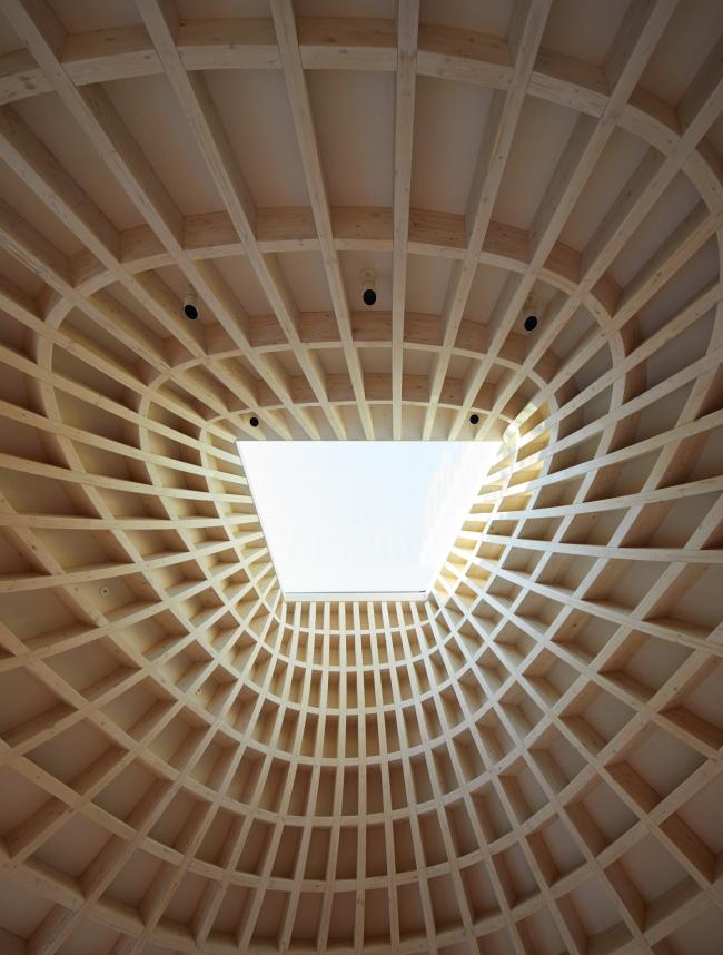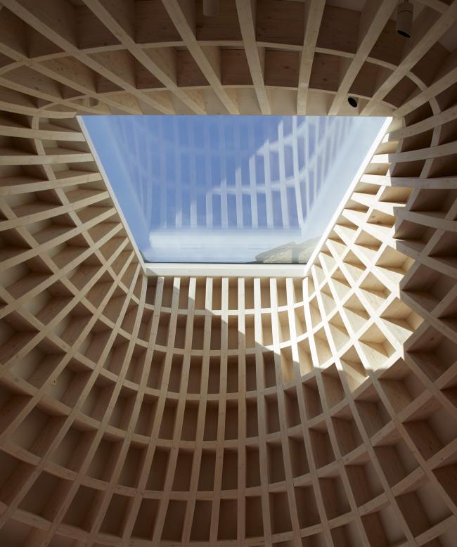 木屋顶结构的每个独特部分在三个方向弯曲,并根据Gianni Botsford Architects提供的三维模型在多洛米蒂山预制。然后将这些碎片构件带到现场,然后分成八个部分进行组装。詹尼·博茨福德如此总结了这个屋顶的设计概念,“使用数字和手工工艺进行设计,建模和制造,每个工艺都依靠另一个,复杂的木屋顶结构的强度掩盖了其温暖的居住建筑所拥有的限制性的规模和特征。